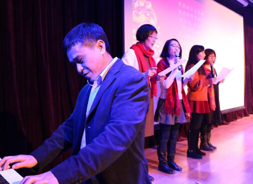 欢送靳诺书记、刘伟校长等一行领导离开之后,刘后滨书记再次弹奏《虫儿飞》,方玉萍、丁莉婷、洪文、郭相宜等老师上台合唱,台下的师生随着歌声慢慢地挥动双臂,场面十分的温馨。
