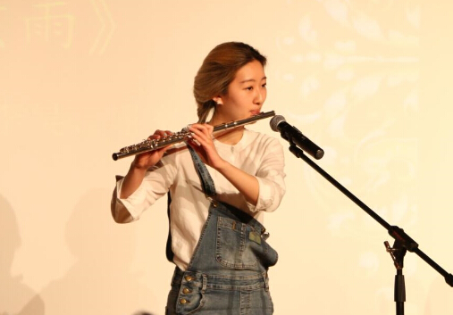 由杜德婧、李昊、屈家桢等来的长笛、钢琴、吉他混奏《时间煮雨》,多种乐器,琴瑟和鸣,让观众大饱耳福。陶雅梅同学还用情演唱了邓丽君的经典歌曲《我只在乎你》。
