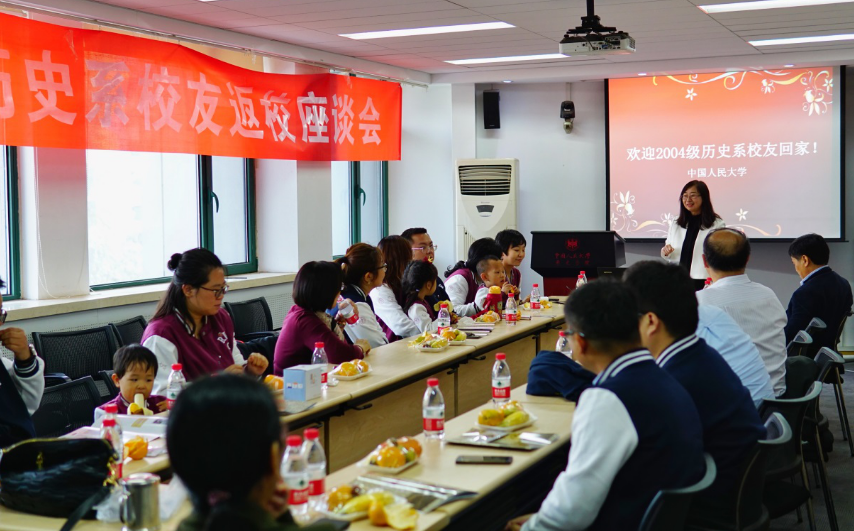 观看完回忆视频后,校友们开始跟大家分享自己的近况。一些同学继续从事与历史学相关领域的工作,他们指出,一方面,当年的历史学习为现在的工作打下了坚实的基础,另一方面,今日的工作经历也使他们对历史有了很多更深的思考。很多同学虽然没有从事与历史相关的行业,但大家一致认为,无论从事什么工作,历史在解决工作中遇到的问题、处理人际关系、培养全局意识和思考人生意义等方面都有很大的帮助。 同学们在言谈中间流露着对于校园生活的怀念和对于老师当年所给与的关心与帮助的感激之情。在人大的岁月,不论在学业、社团经历甚至爱情上,都使他们收获满满。回忆视频的“主角”,当年参军的徐荣同学,更是感慨万千,提出一定要珍视大家一起走过的日子,珍惜现在,共创未来。 李晓菊老师感叹于学习历史对于同学们产生的潜移默化的影响,也赞扬同学们今天愿意回报母校和回馈社会的热情。周施廷老师强调了同学之间和师生之间在今后加强联系的重要性。最后,班主任马利清老师再次表达了对于同学们目前所取得成绩的欣慰之情,也期望同学们今后能够“常回家看看”。